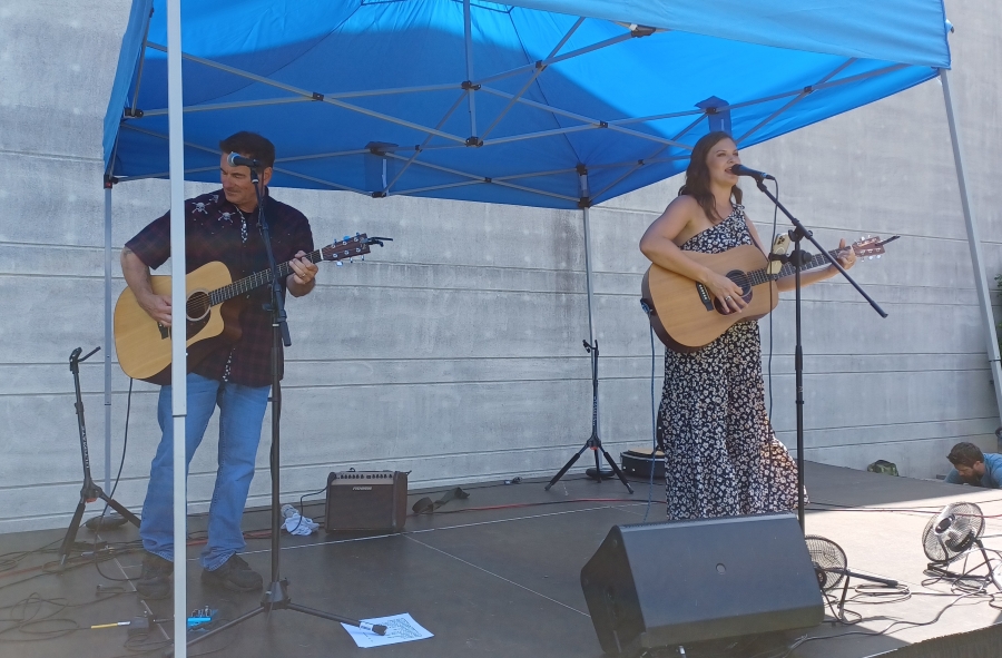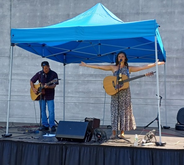 Rob Bellamy joined Ayla and her guitarist for the day, Sean Compton, on stage for the next several songs. First, “Jolene,” which is the kind of power-country tune well suited to Ayla’s voice. Then the softer touch – but still soaring – “Hooked on a Feeling.” Next, Rob performed a song without Ayla, a cover of John Mellencamp’s “Pink Houses” he delivered vocally smooth and gruff with a slight twang.
