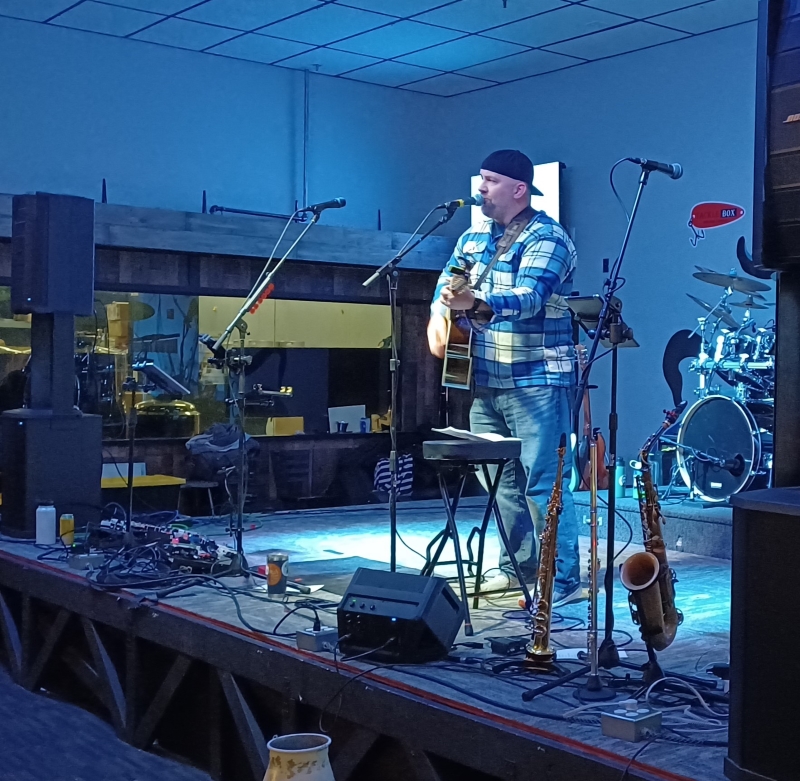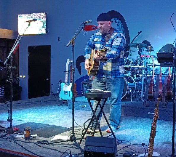 Feeley’s eight-song set began with “Sunrise Over Cheryl,” which seemed kinda Mellencamp-y, served up with John Cougar-ish earnestness befitting the nostalgic song. Next up, “Where I Feel Alive” sported a little more energetic strum, which bent toward a bit more of a Bruce Springsteen feel. With lyrics about “leaving for the West Coast” and “land where the ocean meets the sunrise,” both the tempo and the lyrics are ideal for a travelin’ song.